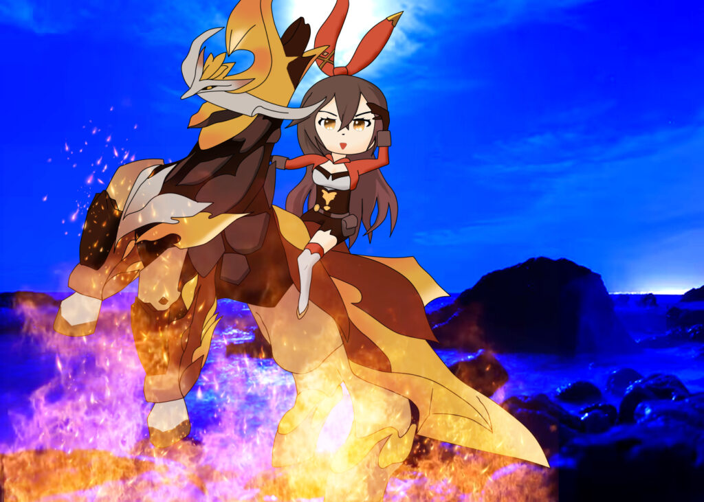 原神の霜夜の継霊者とアンバーちゃんです。午年ですし。原神のエネミーはかっこいいけど描くの難しいですね。エフェクトに頼ってかなり大雑把に書いています。